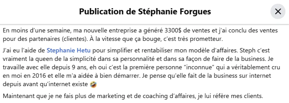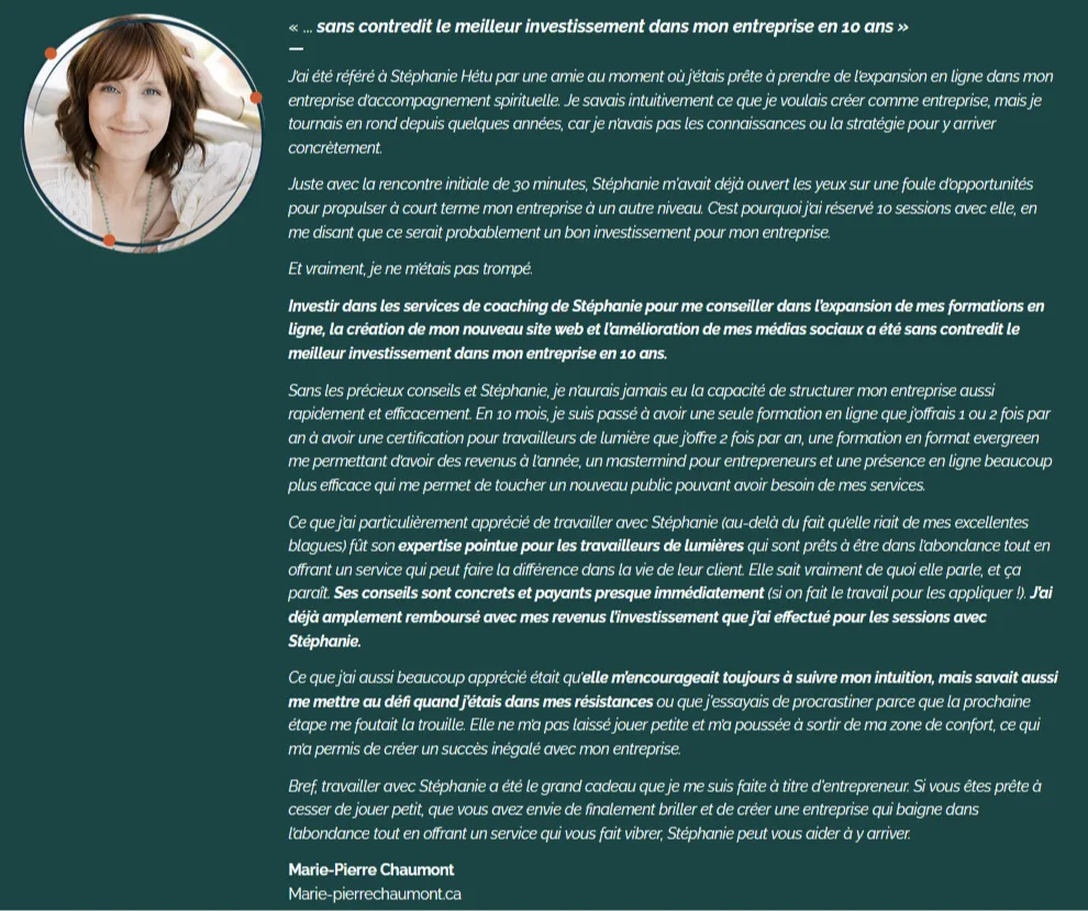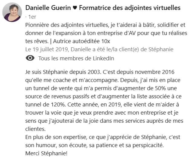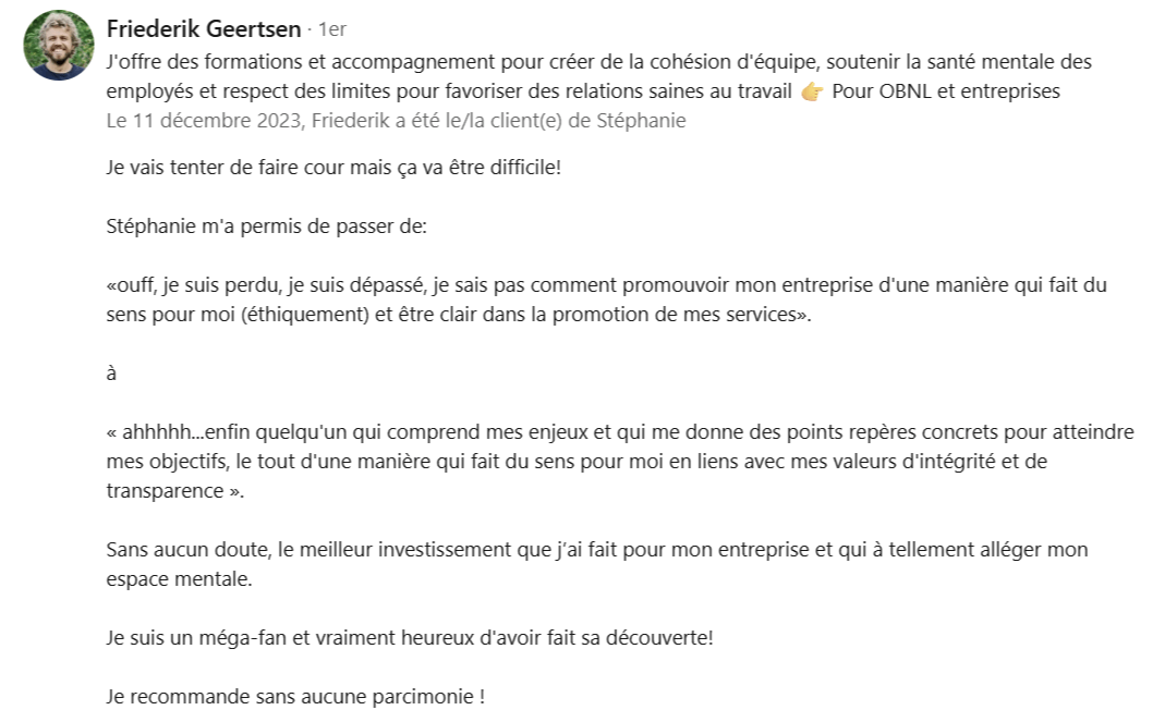 Voici quelques commentaires reçus par des clients qui ont travaillé avec moi ou ont suivi une formation.